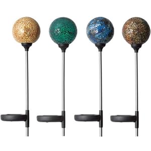 "Not too big and not too small. These solar lights are beautimous!! They provide just the right accent for my flower garden. I love the different colored hues they display while transitioning from color to color! Adorned with the mosaic crackle glass balls they are every bit as pretty during the day as they are at night. A definite quality solar light that should last from year to year. Did I mention that I absolutely love them? "