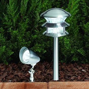 * Made out of quality stainless steel the set includes 6 Odyssey landscape lights, 2 spotlights, a 10 watt transformer with a photo cell.