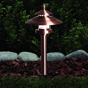 * Made out of quality stainless steel construction with an antique copper finish the set Includes 4 Abbey landscape lights, and a 10 watt transformer with a photo cell