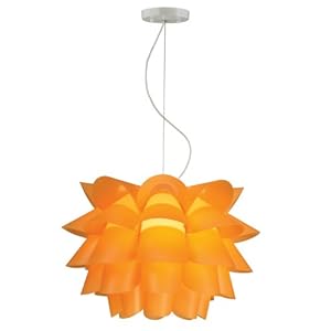 White Flower Pendant Chandelier is many-petaled orb will provide your room with a modern, organic look. The light is diffused through the specially positioned, curved panels of plastic. This architectural form is suspended attractively with a circular ceiling canopy. White finish. Plastic construction. Takes one 60 watt bulb (not included). 25 1/4" wide. 25 3/4" high. Includes 10 feet cable and wire. 4" canopy. Weighs 10.63 pounds.