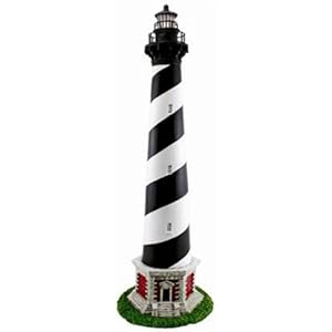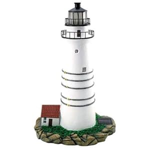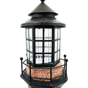 3 Foot Tall Lighthouse Solar Light 36 Inch House Green is wonderfully detailed 3 foot tall lighthouse outdoor garden or porch statue has a solar powered light in the lantern area on top. The lantern turns on automatically in dark conditions, and lasts up to 10 hours under a full charge. The light comes from 3 clear LEDs, so the lantern casts a nice white glow under dark conditions. Made of cold cast resin, the lighthouse measures 36 inches tall, and 9 1/2 inches in diameter at its widest. The top is copper colored aluminum. It's hand-painted, and shows great detail.This statue makes a wonderful gift for any lighthouse lover.